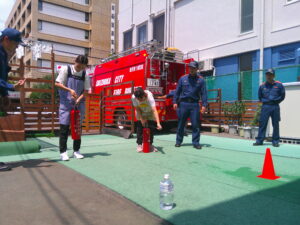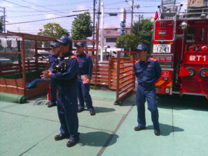 消防士さんに来ていただき、花火のお約束を教えてもらいました。