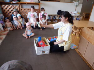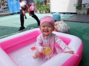 プール開きをしました!プールでのお約束のお話を見たり、おもちゃの使い方を教えてもらいました。初めての水着👙に泣いてしまう子もいましたが、いざ水遊びを始めるとみんなとても楽しそう(*^^*)暑い夏も乗り越えられそうです!!
