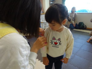 入園・進級の会をしました。今年度はこあら組(0歳児)1名、うさぎ組(1歳児)7名、ぱんだ組(2歳児)7名でスタートしました!毎年恒例の「はらぺこあおむし」の大型絵本の果物がたくさん出てくるシーンでは、絵本に近づき「ぱくっ」と食べてしまうおともだちも‼楽しい1年が始まる予感のする、良いスタートになりました😊子どもたちに負けないよう、たくさんの「楽しい、嬉しい」を作っていけるよう、頑張ります!今年度もよろしくお願い致します!