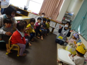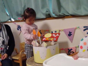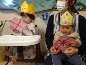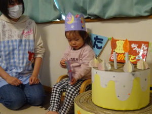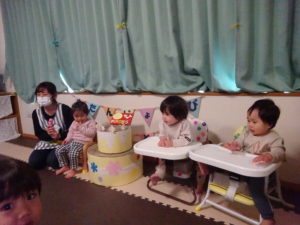 11月生まれの誕生日会をしました。2歳になったうさぎぐみのお友だちと1歳になったこあらぐみのお友だちが2人です。2歳になったお友だちはお話がとても上手で、恥ずかしがりながらも好きな食べ物やブランコで遊ぶのが好きなことを教えてくれました😊こあらぐみのお友だちはお話の代わりにかわいい笑顔で嬉しい気持ちを教えてくれました😊お祝いする側のみんなも楽しそうに参加してくれることがとても嬉しいです!
