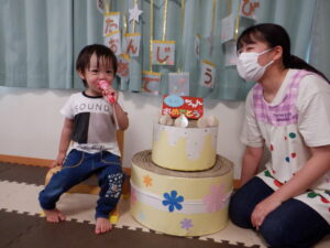 6月生まれは、ぱんだぐみのねお君です!マイクを向けた時、口をつけて話す姿が可愛いです🎤もらった誕生日カードをみんなに見えるように広げてあげる優しい姿が微笑ましいです☺